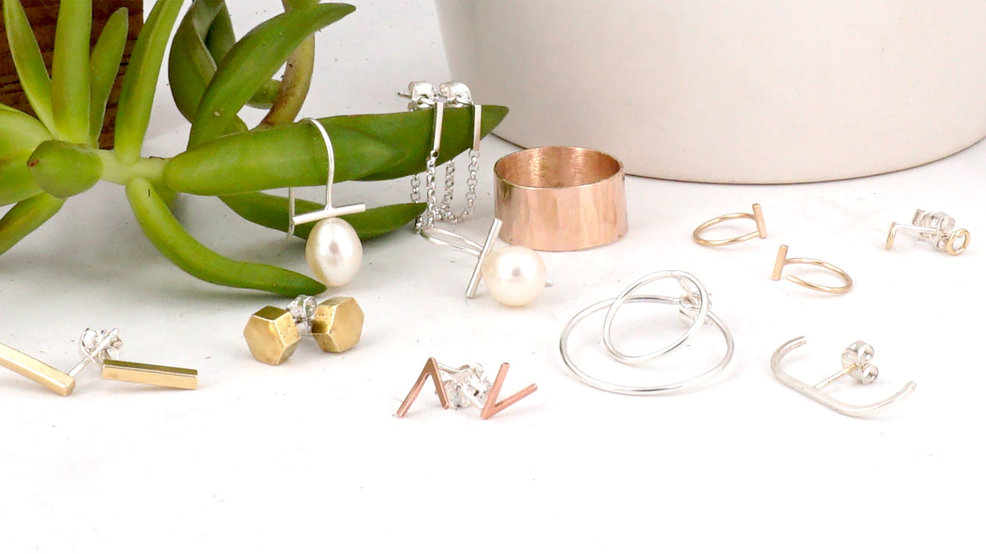 Virginia Wynne Designs is a series of collections focusing on simple, handmade, and elegant jewelry. Our designs are in a number of varying materials including raw brass, sterling silver, 14k gold and much more! Many of the designs come in different shapes, sizes and materials, and if you do not see something that you may be looking for, do not be afraid to ask as I can do custom items as well!