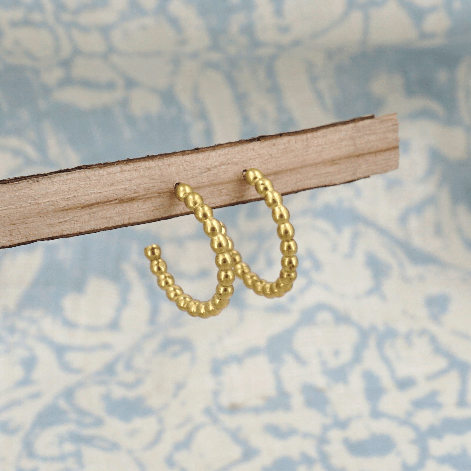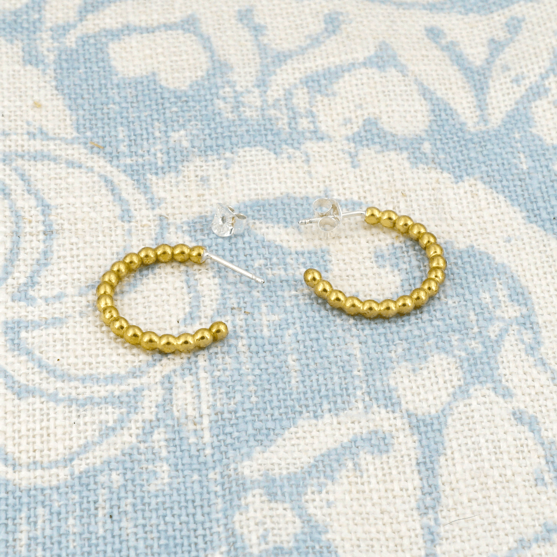 Beaded Hoop Stud Earrings | 2mm Brass, Sterling Silver, or Yellow Gold Fill 0342