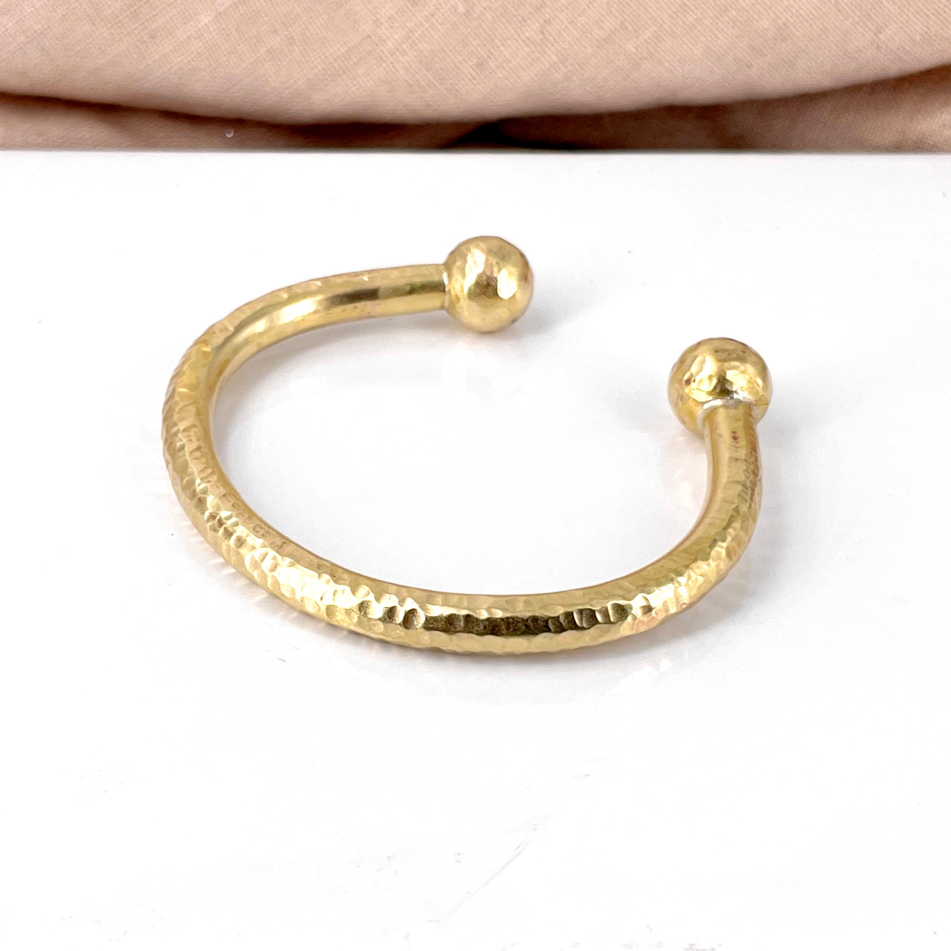 Make a bold style statement with this Chunky Large Hammer Texture Torque Cuff Bracelet. Crafted from sturdy 6mm brass wire, this bracelet features two hefty 12.7mm solid brass balls on each end, ensuring durability and eye-catching appeal.